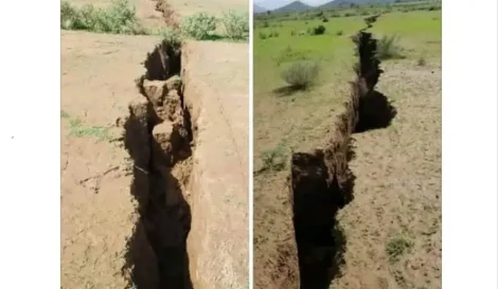 انشقاق أرضي مفاجئ في قاع الحقل – ضوران آنس بـ ذمار اليمنية