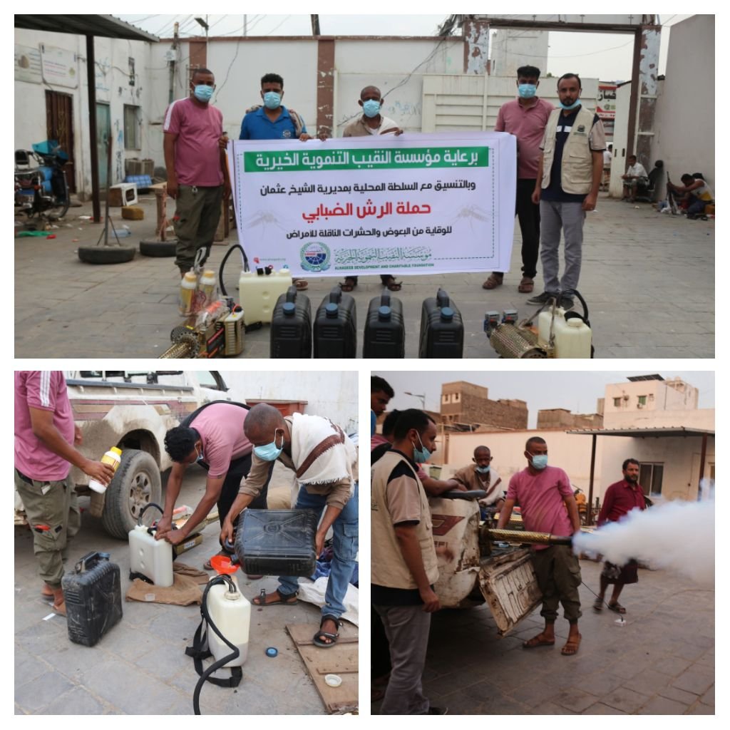 بدعم من مؤسسة النقيب التنموية الخيرية تدشين حملة الرش الضابي في مديرية الشيخ عثمان.
