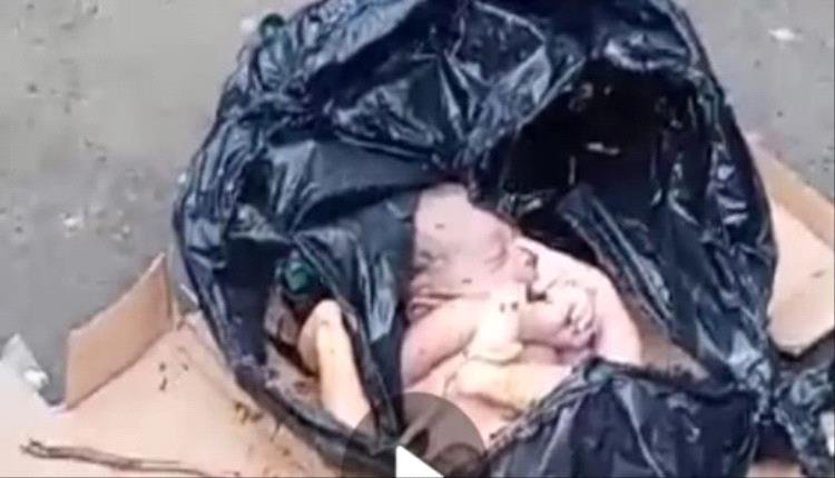 العثور على طفل حديث الولادة مرمي داخل برميل قمامة في عدن.