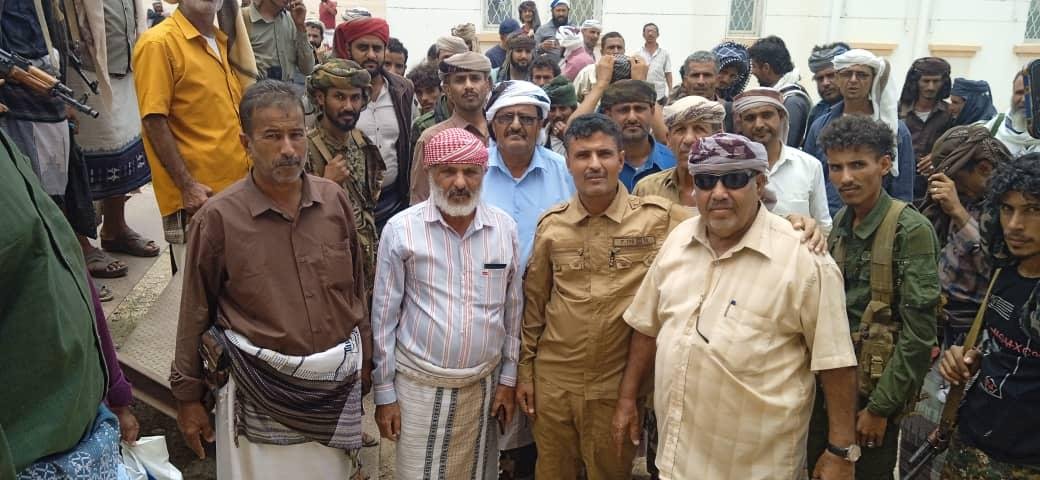 صلح قبيلي ينهي قضية ثأر بين قبيلتين اهل عمر الجلادي وال هيثم الجلادي في مكتب كلد يافع.