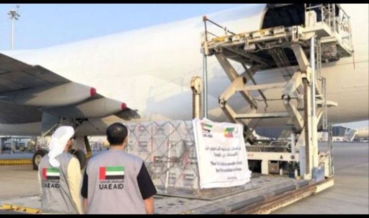 طائرة مساعدات إماراتية إلى إثيوبيا استجابة لكارثة الانهيارات الأرضية.