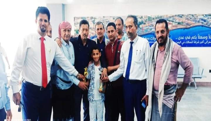 رئيس تنفيذية انتقالي أبين يستقبل العبقري الصغير يسلم وليد في مطار عدن الدولي.