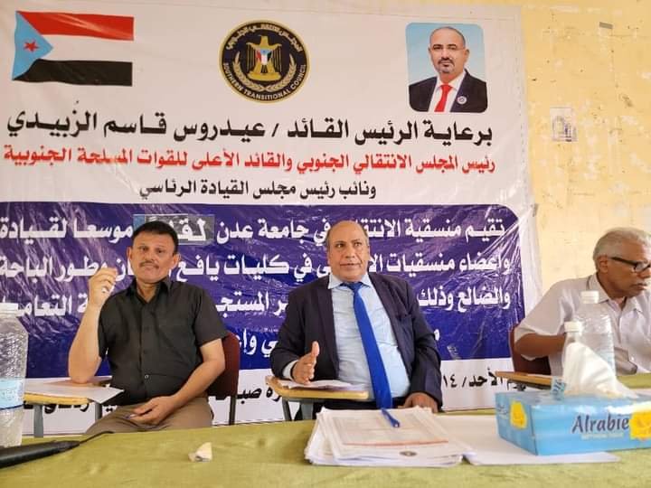 منسقية الانتقالي بجامعة عدن تعقد لقاءً موسعاً مع قيادة وأعضاء المنسقيات بكليات ردفان ويافع وطور الباحة والضالع.