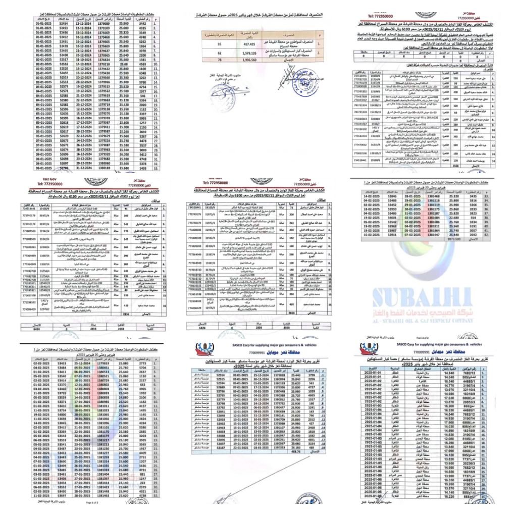 كما نرفق لكم كامل التقارير الرسمية للوارد والمنصرف اليومي منذ بداية العام وحتى 20 فبراير 2025، والتي توضح بشكل دقيق آلية التوزيع والتدفق المستمر للغاز إلى مديريات محافظة تعز.