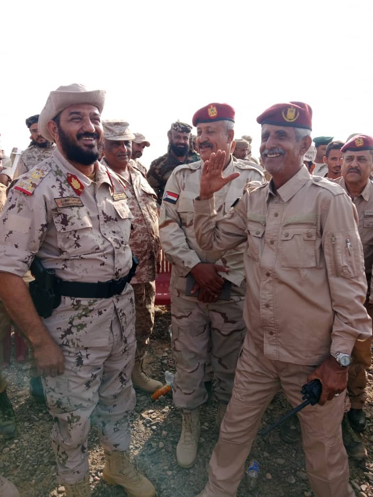 والعميد نجيب الصبيحي اركان محور العند والذي كان في استقبالهم قائد اللوا 14صاعقة العميد عثمان حيدرة معوضة،