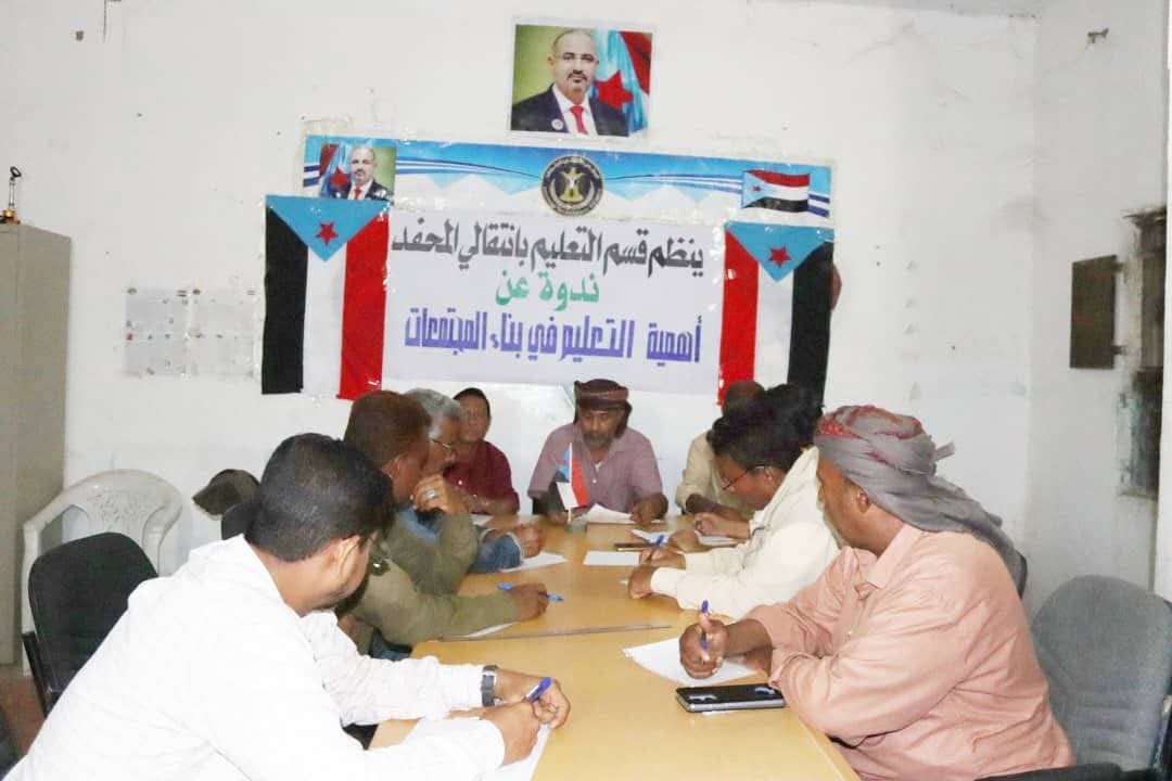 نظمت القيادة المحلية للمجلس الانتقالي الجنوبي بمديرية المحفد في محافظة أبين، مساء اليوم الاثنين، ندوة توعوية حول أهمية التعليم في بناء المجتمعات، وذلك بمشاركة عدد من الكوادر التربوية في المديرية.