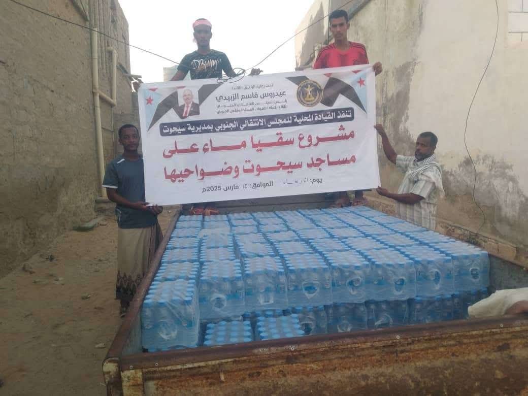 دشنت الهيئة التنفيذية للقيادة المحلية للمجلس الانتقالي الجنوبي في مديرية سيحوت بمحافظة المهرة، الأربعاء، مبادرة "سقيا" لتوزيع مياه الشرب على مساجد المديرية.