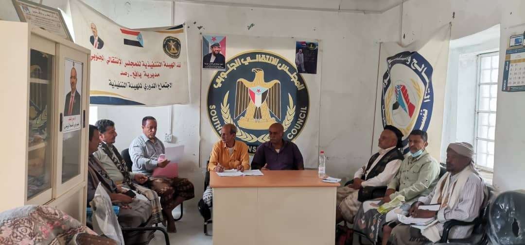 عقدت الهيئة التنفيذية للقيادة المحلية للمجلس الانتقالي الجنوبي بمديرية رصد، محافظة أبين، صباح اليوم الثلاثاء، اجتماعها الدوري لشهر أبريل، برئاسة الأستاذ أحمد عوض السعدي، رئيس الهيئة.
