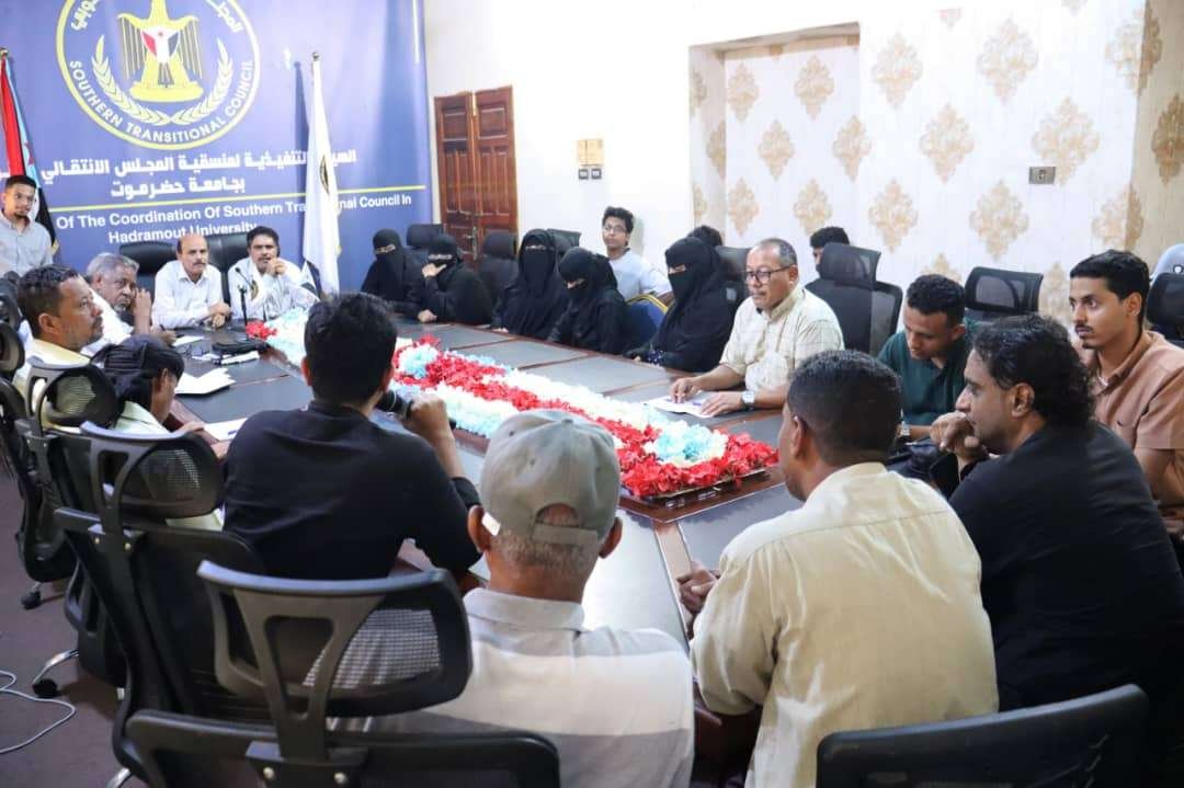 ناقش العميد الركن سعيد أحمد المحمدي، رئيس الهيئة التنفيذية للقيادة المحلية للمجلس الانتقالي الجنوبي بمحافظة حضرموت، صباح اليوم الأربعاء بمدينة المكلا، مع الهيئة التنفيذية لمنسقية المجلس الانتقالي الجنوبي بجامعة حضرموت، التحضيرات الجارية لتنظيم الفعالية الجماهيرية الكبرى الداعمة لقوات النخبة الحضرمية.
