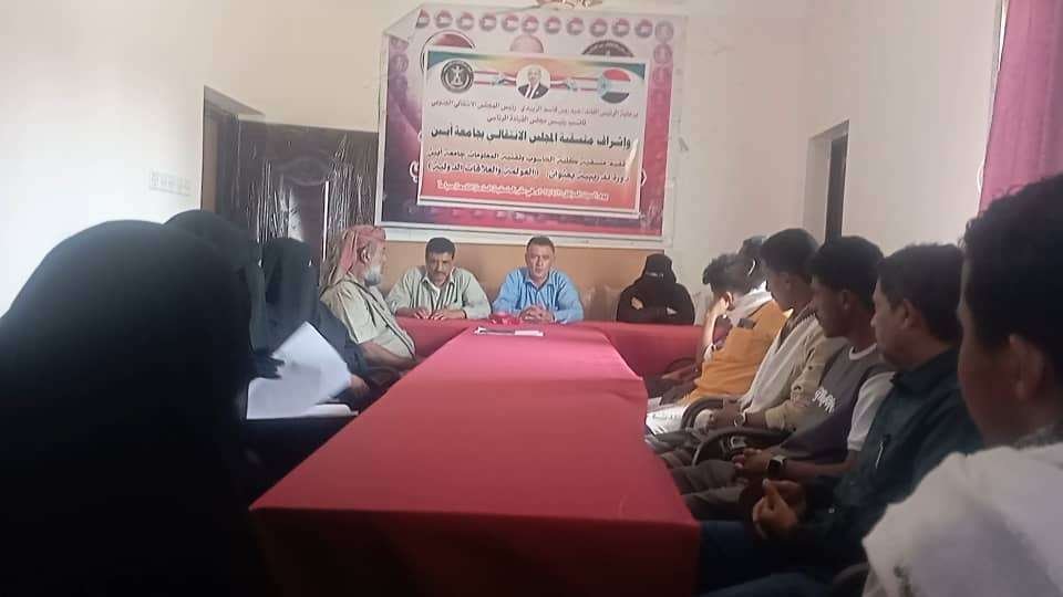 نظمت منسقية المجلس الانتقالي الجنوبي بكلية الحاسوب وتقنية المعلومات بجامعة أبين، اليوم السبت، دورة تدريبية بعنوان "العولمة والعلاقات الدولية"، وذلك ضمن خططها الرامية إلى تعزيز الوعي السياسي والثقافي لدى طلاب الجامعة.