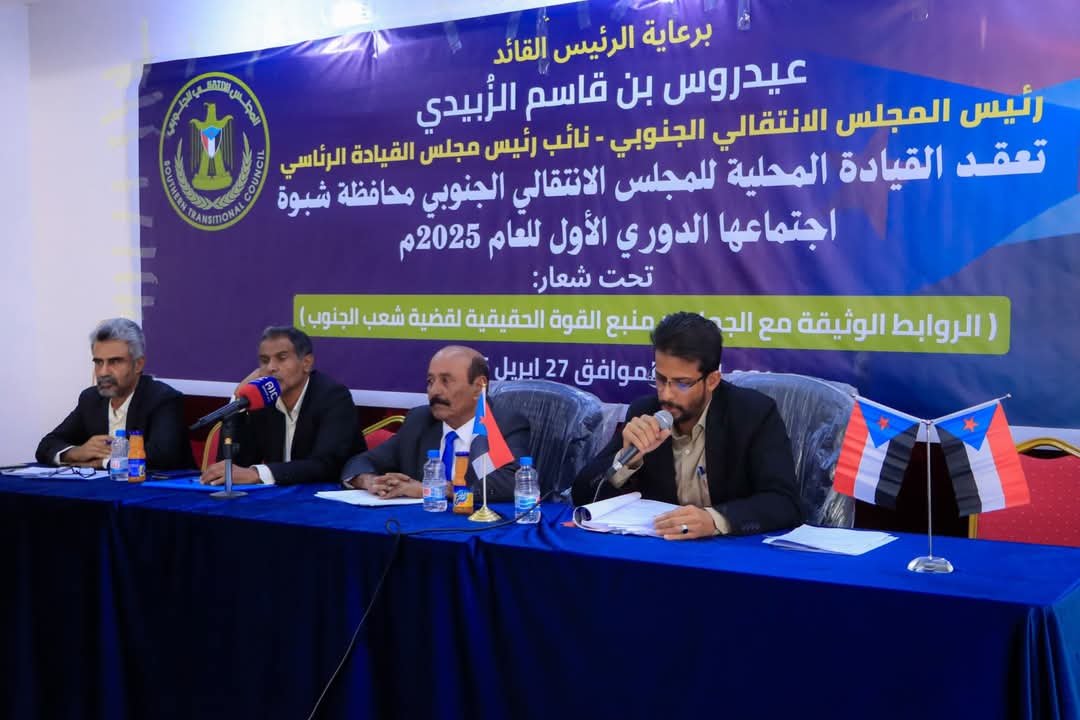 عقدت القيادة المحلية للمجلس الانتقالي الجنوبي بمحافظة شبوة، اليوم الأحد، اجتماعها الموسع للفصل الأول من العام 2025، برئاسة الشيخ لحمر علي لسود، رئيس الهيئة التنفيذية.