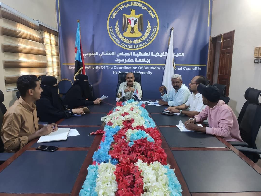 عقدت الهيئة التنفيذية لمنسقية المجلس الانتقالي الجنوبي في جامعة حضرموت، يوم أمس الثلاثاء، اجتماعها الدوري الثاني لشهر أبريل، برئاسة الدكتور حسن الغلام العمودي، رئيس تنفيذية المنسقية.