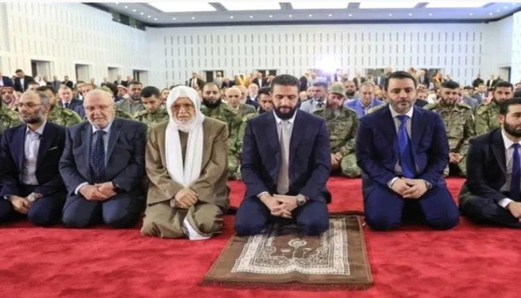 أدى الرئيس السوري المؤقت أحمد الشرع صلاة عيد الأضحى، صباح اليوم الجمعة، صلاة عيد الأضحى في قصر الشعب بالعاصمة دمشق، وشارك في أداء الصلاة عدد من الوزراء والمسؤولين في الدولة، إلى جانب قيادات في الجيش السوري، وممثلين عن العشائر العربية، ومواطنين سوريين.