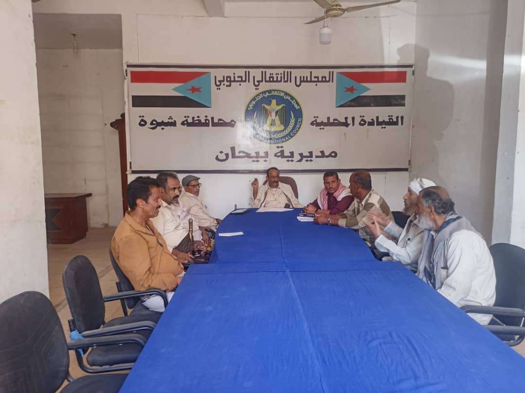 عقدت الهيئة التنفيذية للقيادة المحلية للمجلس الانتقالي الجنوبي في مديرية بيحان بمحافظة شبوة، اليوم السبت، اجتماعها الدوري لشهر يونيو، برئاسة الأستاذ احمد محسن القربعي، رئيس الهيئة.