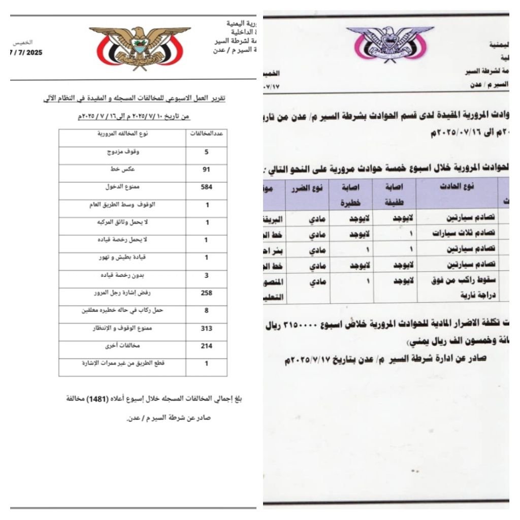 تأتي هذه الإحصائية ضمن جهود شرطة السير بعدن لتعزيز الرقابة المرورية والحد من المخالفات والحوادث، بما يسهم في حماية الأرواح والممتلكات وتحقيق السلامة على الطرقات.