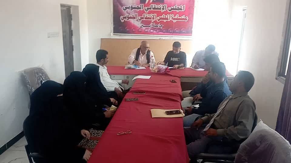 عقدت منسقية المجلس الانتقالي الجنوبي بجامعة أبين، اليوم الخميس، اجتماعها الدوري لشهر يوليو 2025م، برئاسة الدكتور يسلم بالليل علوي طاهر رئيس الهيئة التنفيذية للمنسقية.