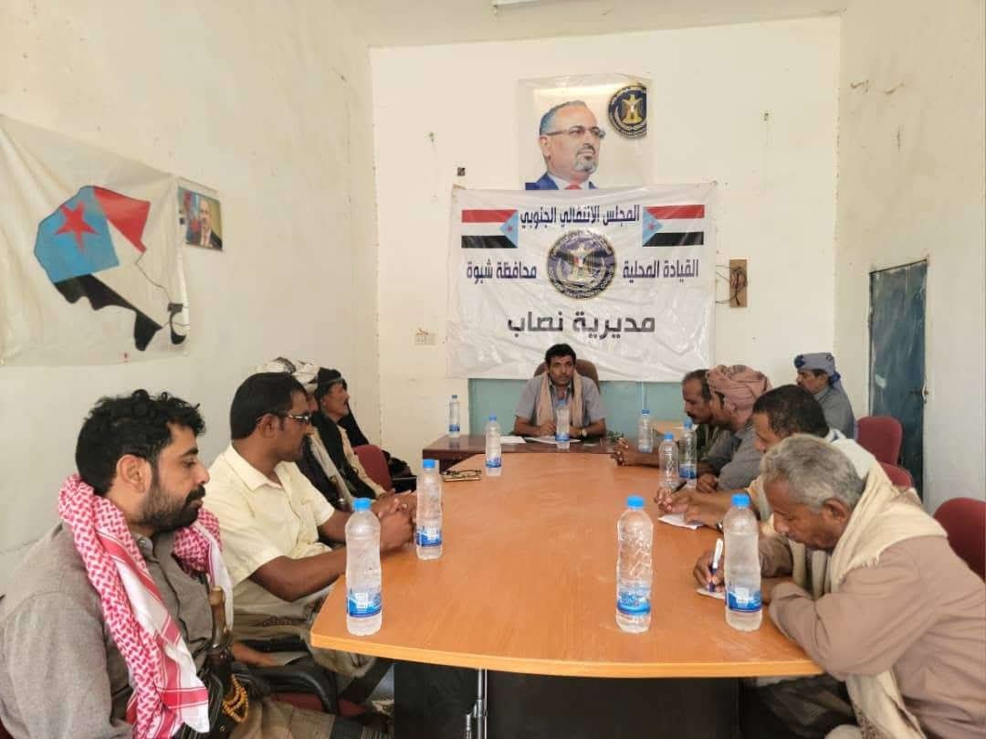 عقدت الهيئة التنفيذية للقيادة المحلية للمجلس الانتقالي الجنوبي في مديرية نصاب بمحافظة شبوة، اليوم السبت، اجتماعها الدوري لشهر يوليو، برئاسة رئيس الهيئة، عبدالله عوض عريق.