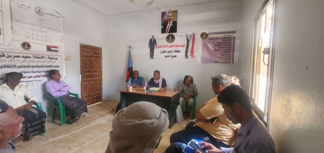 عقدت الهيئة التنفيذية للقيادة المحلية للمجلس الانتقالي الجنوبي في مديرية حديبو بمحافظة سقطرى، اليوم الثلاثاء، اجتماعها الدوري لشهر يوليو، برئاسة رئيس الهيئة، سالم عبدالله الحامد.