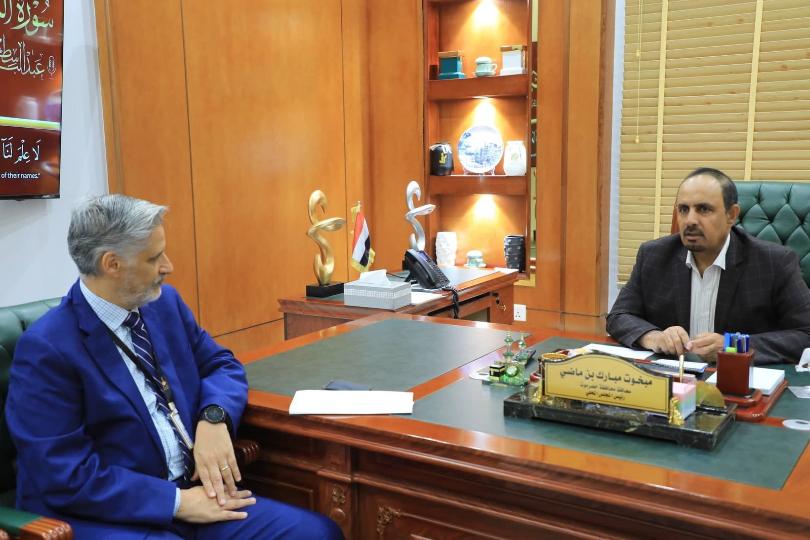 استقبل محافظ حضرموت الأستاذ مبخوت مبارك بن ماضي، اليوم في المكلا، وفد صندوق الأمم المتحدة للسكان (UNFPA) لدى اليمن، برئاسة القائم بأعمال الممثل المقيم للصندوق هشام نهرو ، في إطار الجهود المشتركة لتعزيز التعاون بين السلطة المحلية والمنظمات الدولية العاملة في المجال الإنساني.