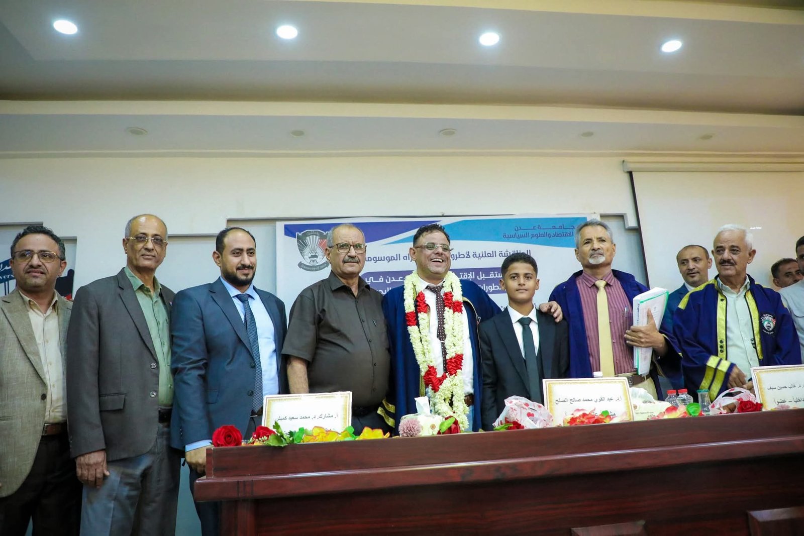 بحضور عضوي هيئة رئاسة المجلس الانتقالي الجنوبي الأستاذ عبدالرحمن جلال الصبيحي، الأمين العام للأمانة العام، والأستاذ فضل محمد الجعدي، شهدت كلية الاقتصاد والعلوم السياسية بجامعة عدن، اليوم الأربعاء، المناقشة العلنية لأطروحة الدكتوراه للباحث ماهر محمد صالح الحجيلي، الموسومة بـ" المستقبل الاقتصادي لميناء عدن في ضل تطورات التجارة الدولية والنقل البحري"