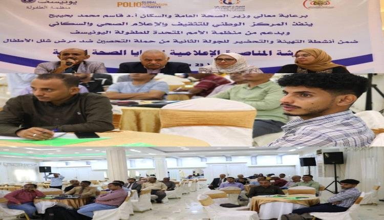 وتضمنت الورشة عدداً من المحاضرات العلمية والتدريبية، حيث قدّم الصحفي عبدالرحمن أنيس محاضرة حول دور الإعلام التقليدي والرقمي ووسائل التواصل الاجتماعي في مناصرة حملات التحصين ومكافحة الشائعات، بينما تناول الأستاذ الدكتور خالد السقاف، رئيس اللجنة العلمية بوزارة الصحة، أهمية المناصرة الإعلامية كأداة داعمة للصحة العامة، مشدداً على أن شلل الأطفال يمثل خطراً جسيماً قد يتسبب في الإعاقة أو الوفاة، الأمر الذي يحتم تضافر الجهود لإنجاح الحملة الوطنية.