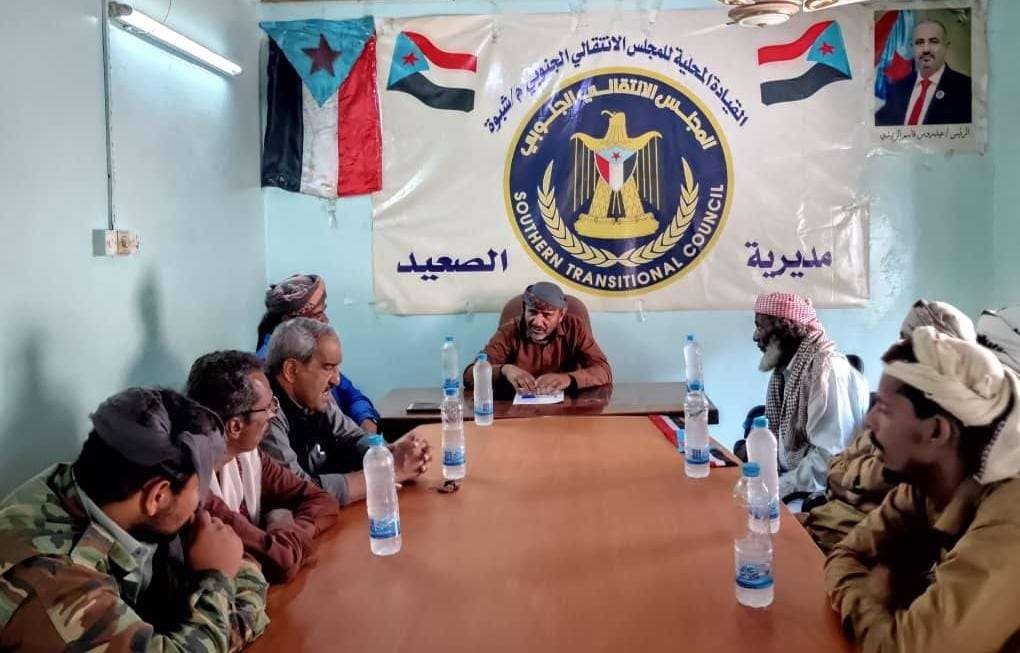 عقدت الهيئة التنفيذية للقيادة المحلية للمجلس الانتقالي الجنوبي، في مديرية الصعيد بمحافظة شبوة، اليوم الأحد، اجتماعها الدوري لشهر يناير برئاسة الدكتور محمد سعيد المدحجي، رئيس الهيئة.