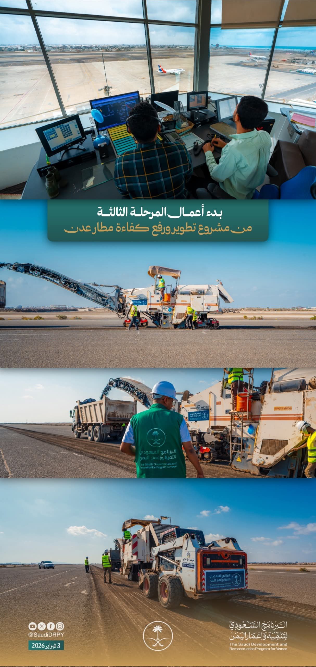 ويأتي هذا المشروع ضمن جهود البرنامج السعودي لتنمية وإعمار اليمن لتطوير البنية التحتية الحيوية، ورفع كفاءة الخدمات اللوجستية والنقل الجوي، وتحسين تجربة المسافرين وجودة الخدمات المقدمة في مطار عدن الدولي، باعتباره أحد أهم المنافذ الجوية في البلاد.