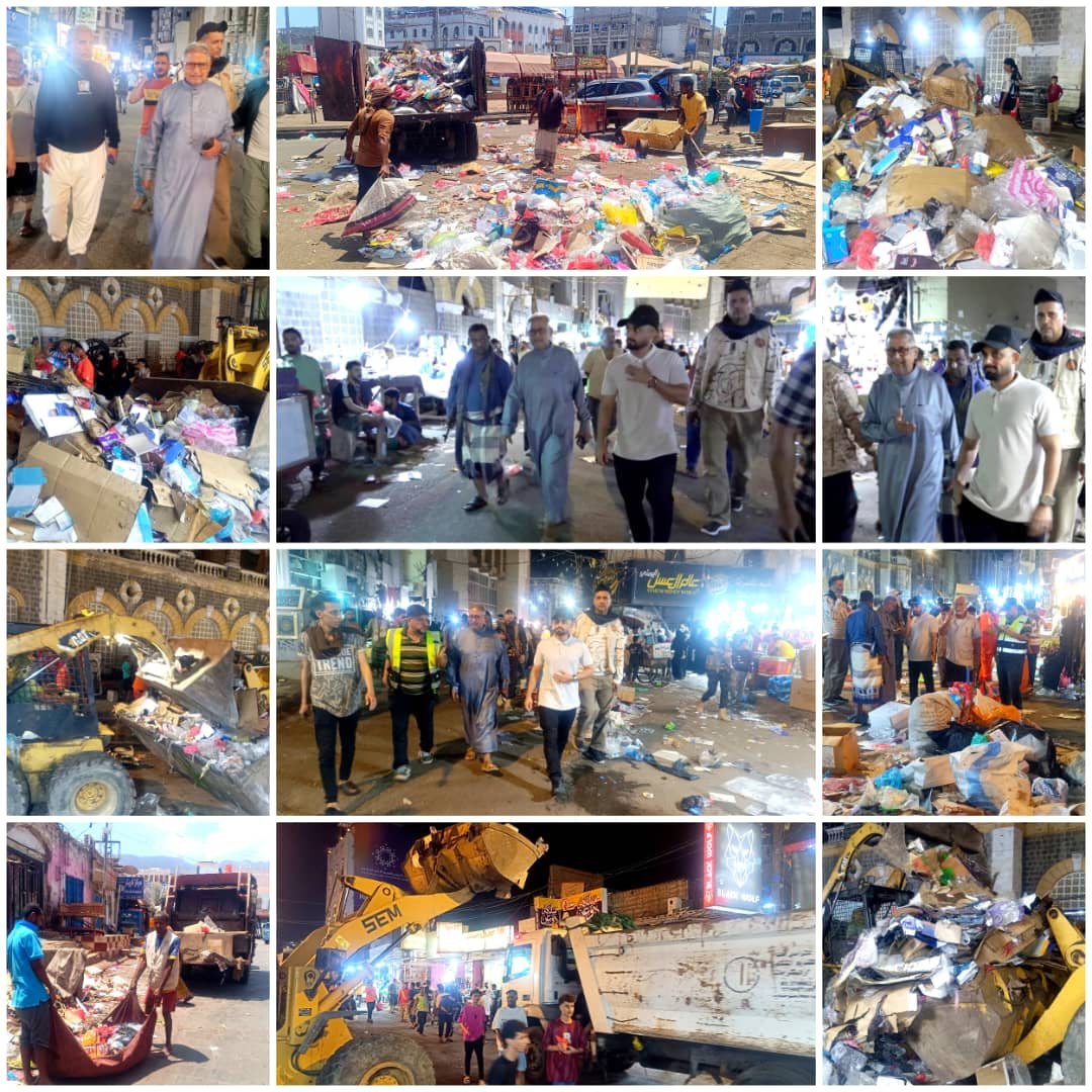 وتركزت حملات النظافة بشكل أكبر في مديرية الشيخ عثمان حيث تتواجد الأسواق والمحلات التجارية والبسطات والمفرشين .والتي انطلقت الساعة ال١٢ ليلة أمس بمشاركة عدد من القلابات الكبيرة والشيول وبوبكات و فريق عمل النظافة .